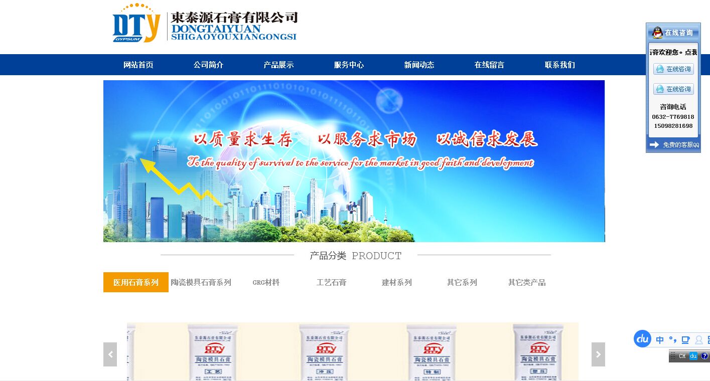 棗莊東泰源石膏有限公司,成立于2008年9月11日,座落在嶧城區(qū)東環(huán)吳林BRT車站南1.5公里處(棗臺路南側(cè)),主營精密石膏粉研究開發(fā)和生產(chǎn)銷售。公司固定資產(chǎn)投資1200多萬元,年銷售額超過1000萬元,占地20000平方米。 棗莊市嶧城區(qū)石膏資源豐富,依托當?shù)貎?yōu)質(zhì)、豐富的纖維石膏(俗稱白石膏)資源,利用國外先進的生產(chǎn)設(shè)備和技術(shù),生產(chǎn)加工陶瓷、醫(yī)用、建材等行業(yè)三大系列十多個品種的精密石膏粉。產(chǎn)品廣泛應用于陶瓷、工藝品、琉璃、鞋業(yè)、醫(yī)療、食品、教育、新型建材等方面,在國內(nèi)外市場上享有很高的信譽。