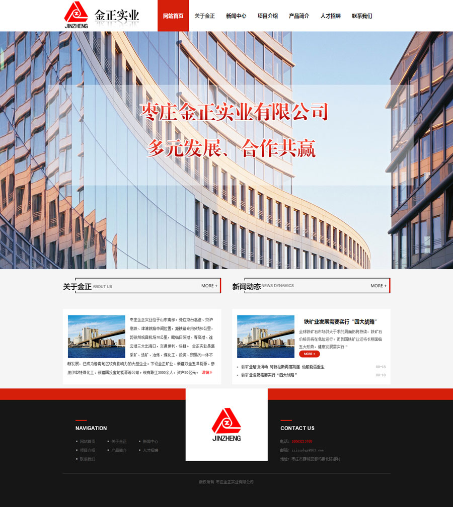 祝賀金正實業(yè)有限公司網(wǎng)站上線 公司介紹: 棗莊金正實業(yè)位于山東南部。處在京臺高速、京滬高鐵、津浦鐵路中間位置,距鐵路專用貨場5公里,距徐州觀音機場70公里,毗臨日照港、青島港、連云港三大出?,交通便利、快捷。 金正實業(yè)是集采礦、選礦、冶煉、煤化工、投資、貿(mào)易為一體不斷發(fā)展,已成為魯南地區(qū)較有影響力的大型企業(yè)。下設金正礦業(yè)、新疆雙全五洋能源、并參股伊犁特煤化工、新疆國投寶地能源等公司。現(xiàn)有職工3000余人,資產(chǎn)20億元。先后獲得棗莊百強企業(yè)、突出貢獻企業(yè)、誠信經(jīng)營企業(yè)、納稅十強企業(yè)、山東省工會工作先進企業(yè)等榮譽稱號。 金正礦業(yè)年產(chǎn)鐵精粉60萬噸,金正實業(yè)年產(chǎn)鑄造用生鐵26萬噸,主要銷往江蘇、浙江、福建、安徽、河北、山東等地,深受廣大客戶好評。 公司始終秉承“多元發(fā)展、合作共贏”的經(jīng)營理念,遵循“精誠團結(jié)、銳意進取”的企業(yè)精神。竭誠為客戶提供優(yōu)質(zhì)的產(chǎn)品和服務。真誠歡迎各界同仁前來指導、合作,我們愿與您風雨同舟、攜手共創(chuàng)美好未來。 棗莊金正實業(yè)有限公司